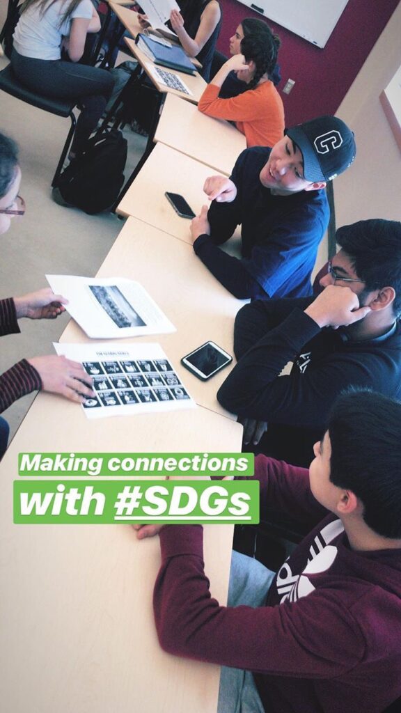 Enfin, nous avons établi le lien: pour que le développement durable progresse, nous devons examiner les problèmes qui se posent dans une perspective critique et globale. Nous nous sommes divisés en groupes et avons examiné diverses études de cas internationales qui ont montré comment des solutions énergétiques peuvent mener à la justice sociale et environnementale. Les groupes ont été invités à lire leurs histoires, à explorer les Objectifs de développement durable et à déterminer comment l’utilisation de Objectif 7: Énergie propre et d’un coût affordable comme point de départ du changement permettrait de progresser dans de nombreux autres objectifs.