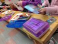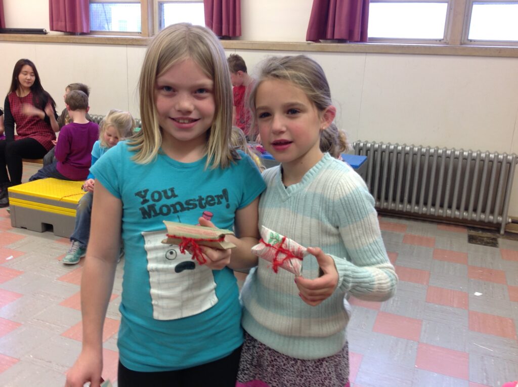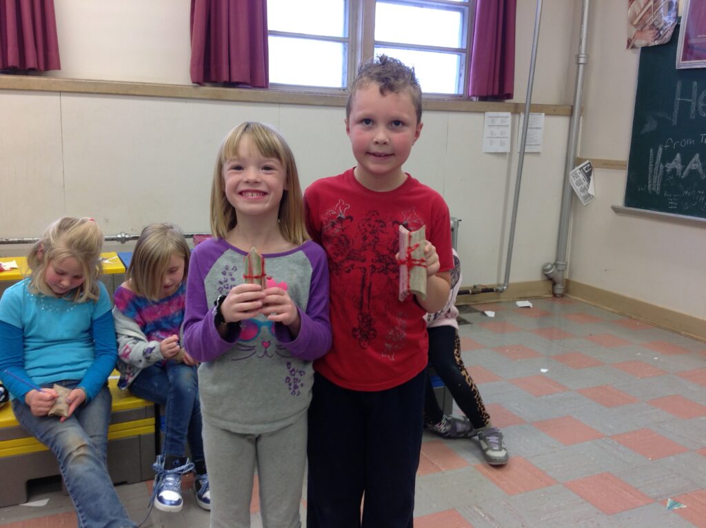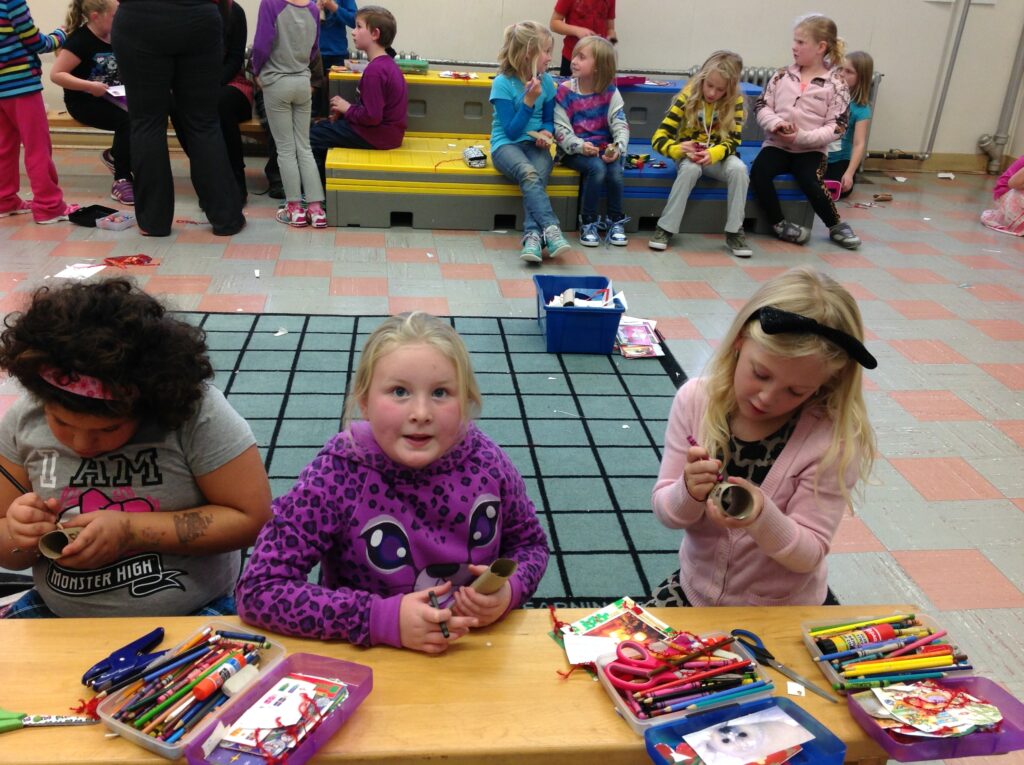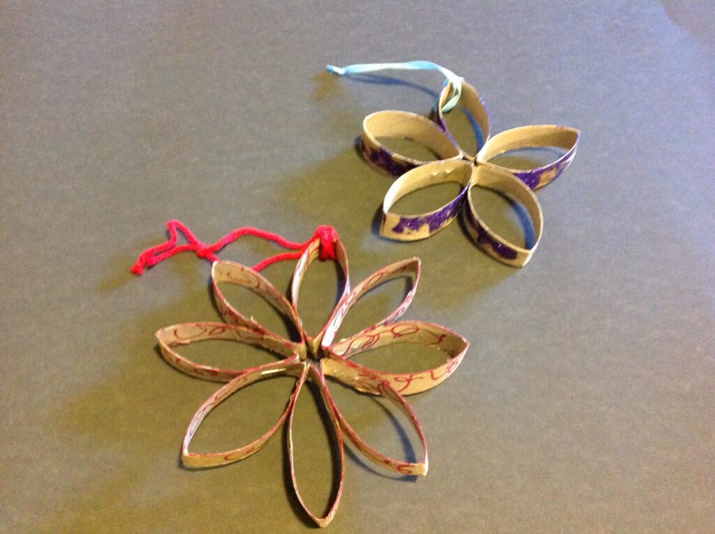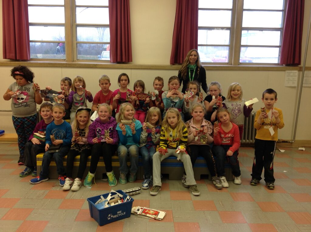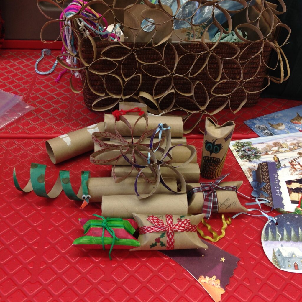 They started their fall off with a garden harvest and made zombie smoothies with the produce for the entire school. Now that the harvest season has passed the students have been focusing on minimizing waste in the school by upcycling items from the waste bins. Some awesome ideas for holiday upcycling included reusing old Christmas cards and turning them into gift tags, turning empty toilet paper/paper towel rolls into gift pouches and star ornaments. The team had a blast, with plans to create even more at home!