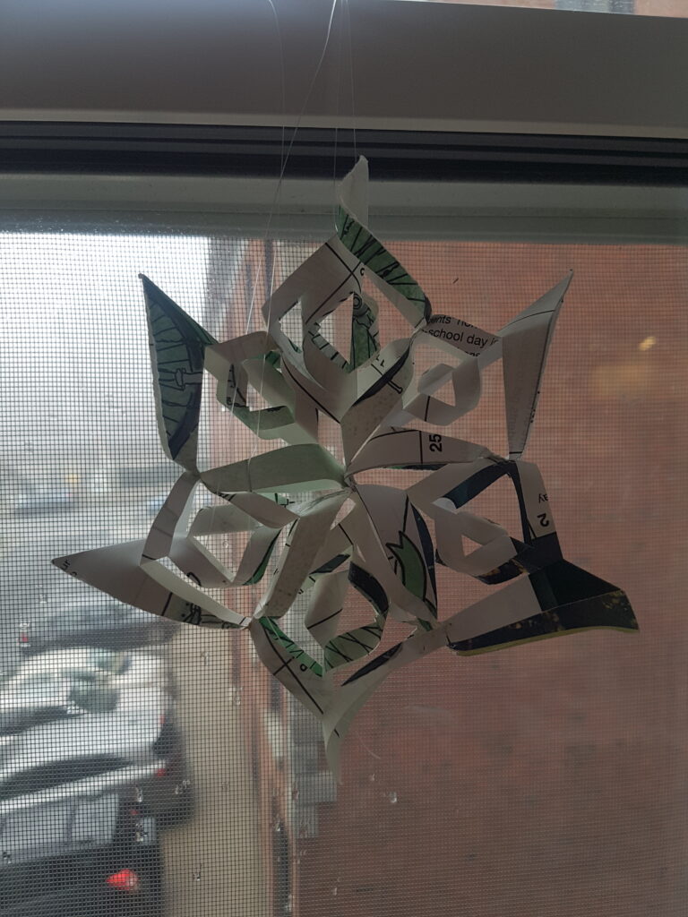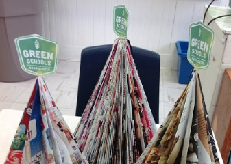 While I was at Portland Estates Elementary, I showed students some different decorations to make instead of buying brand new ones. Upcycling is a great way to not only save money but also help the environment because when we use something new, we dispose of old items that never really go away. Examples of great things to make for Holiday decorations are paper stars using used paper, mini Christmas Trees made of an old magazine, and snowflakes made from newspaper. For more ideas, you can check out our awesome support packages such as Green Gifts or Green Holidays. The students also let me know what they could do differently to be more energy efficient such as turning off lights when they leave a room or taking shorter showers.