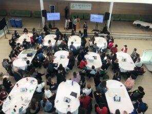 Last week we hosted an exciting event called Celebrate Cape Breton at Cape Breton University. This event including Placemaking 4G, Efficiency Nova Scotia, and Cape Breton University. Ninety-nine Grade 9. students from across Cape Breton attended the event. The goal was to celebrate the sustainable projects and ideas that are already happening in Cape Breton, and to brainstorm what the future could look like. Students prepared for the day by watching a series of videos and having discussions on different sustainability topics beforehand. This event supported curriculum outcomes of the Citizenship 9 course. This event was hosted by Cape Breton University at the Verschuren Centre, a building that is a perfect example of energy efficiency and renewable energy.