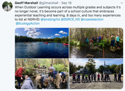 Why not join me by turning off the lights, shutting down the electronics, and heading outside to work and learn. Based on the number of social media posts I have seen from schools across Nova Scotia there are a lot of teachers doing just that.